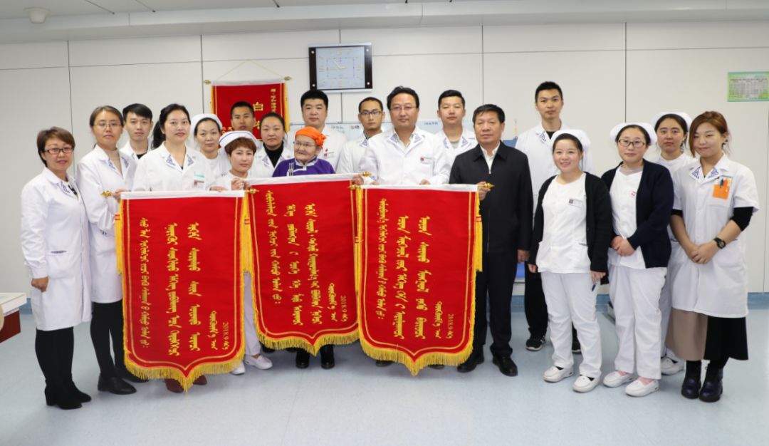 都貴瑪老人和侄子即將出院了,老人特意為蒙醫(yī)骨傷科和蒙醫(yī)內(nèi)科的醫(yī)生和護士們送來了三面錦旗,代表著她們對醫(yī)務人員的滿心感激之情。