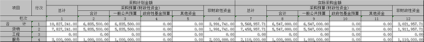 注:1.本表反映各部門和單位納入部門預(yù)算范圍的各項政府采購預(yù)算及支出情況,表中數(shù)據(jù)取自政府采購信息統(tǒng)計報表中“政府采購資金情況表”。