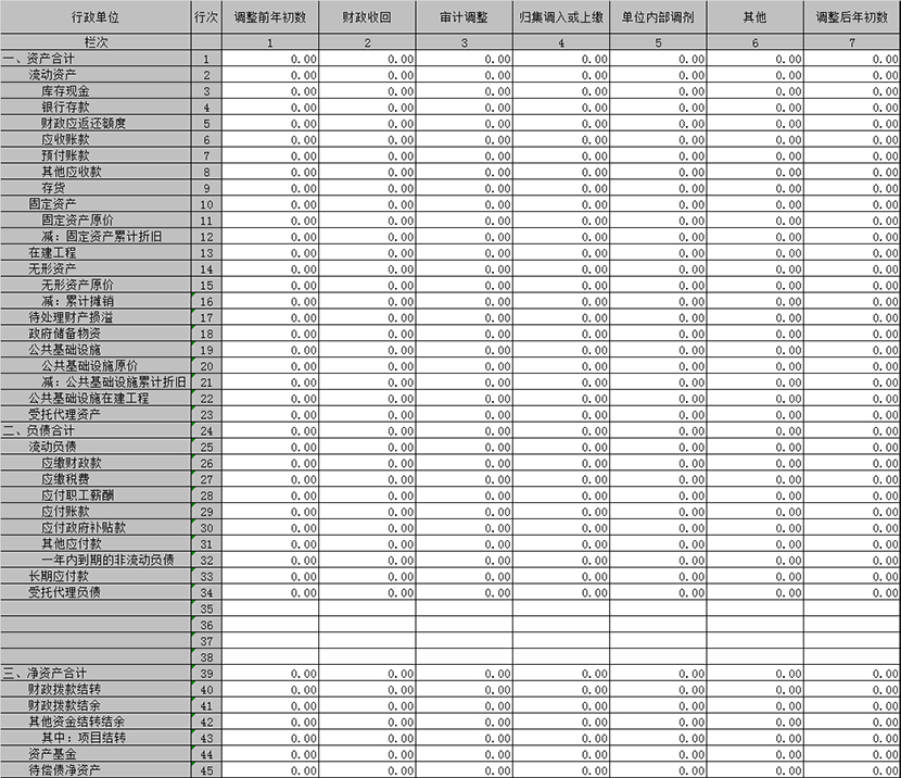 注:1.本表反映部門和單位年初資產(chǎn)負債簡表年初數(shù)變動情況,由資產(chǎn)負債簡表年初數(shù)發(fā)生變動的部門和單位編報。