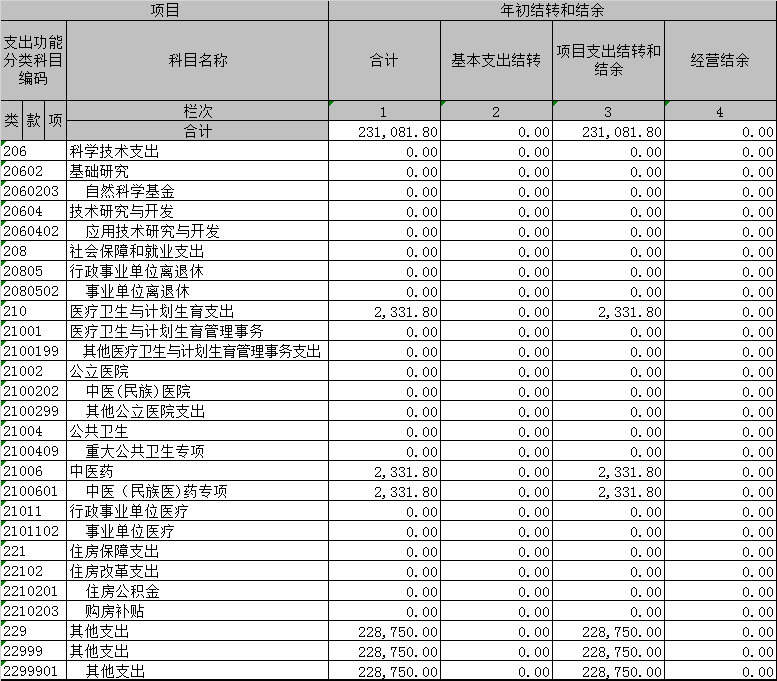 CS01 年初結(jié)轉(zhuǎn)和結(jié)余調(diào)整情況表