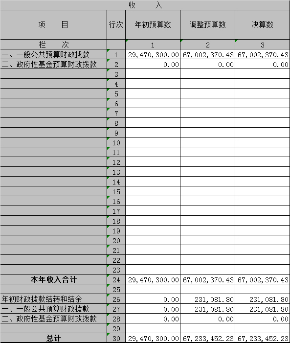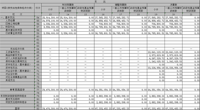2.“調(diào)整前年初結(jié)轉(zhuǎn)和結(jié)余”為上年度財政審核批復(fù)的部門決算年末結(jié)轉(zhuǎn)和結(jié)余數(shù),“調(diào)整后年初結(jié)轉(zhuǎn)和結(jié)余”為本年度決算報表填報的調(diào)整后年初結(jié)轉(zhuǎn)和結(jié)余數(shù)。