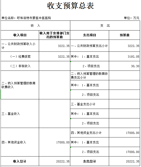 呼和浩特市蒙醫(yī)中醫(yī)醫(yī)院收支預(yù)算總表