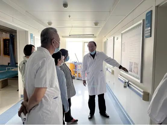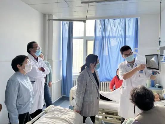 在病房中,調研組聽取了兩個科室的工作匯報,并對蒙醫(yī)骨傷科的智慧病房做出了較高評價,全面了解了我院健康教育處方項目的推進情況。
